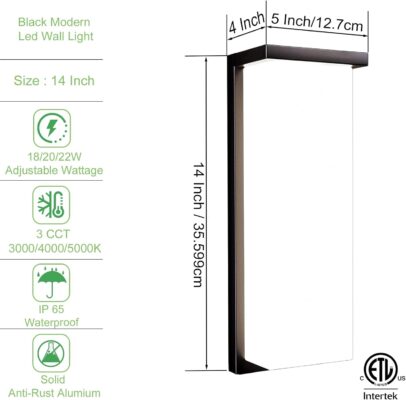 ADJUSTABLE COLOR TEMPERATURE & WATTAGE: Customize your outdoor lighting with three selectable color temperatures (3000K, 4000K, 5000K) at the touch of a button via a wall-mounted switch. Easily adjust from warm to cool white, and choose between wattages of 18W, 20W, or 22W to suit your lighting needs. Whether you’re hosting a gathering or simply relaxing, set the perfect ambiance for any occasion.