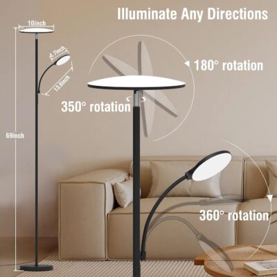 Illuminate your space with the 2025 Upgraded 42W LED Floor Lamp, offering 4500 lumens of ultra-bright light that is 90% brighter than other standard lamps. Perfect for any room, this energy-efficient lamp provides glare-free, even lighting, with a flexible gooseneck reading light for focused task lighting.