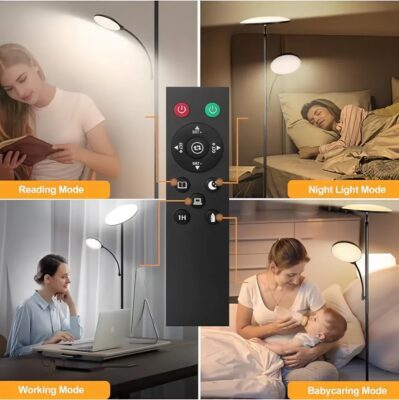 Designed with safety in mind, the lamp’s stable base prevents tipping and is child and pet-friendly. Easy to assemble and built to meet all safety standards (FCC, CE, RoHS, UL), this modern black floor lamp is perfect for any living room, bedroom, office, or study.