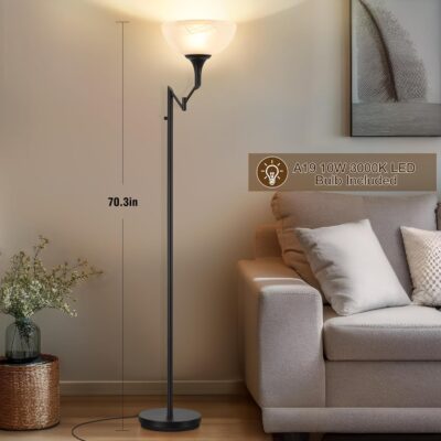 Elevate your home’s ambiance with this sleek and versatile 70-inch black torchiere floor lamp. Designed to blend style, functionality, and comfort, this tall standing lamp features an adjustable swing arm that allows you to direct light exactly where you need it—perfect for cozy reading corners, behind the sofa, or over a favorite chair or bed.