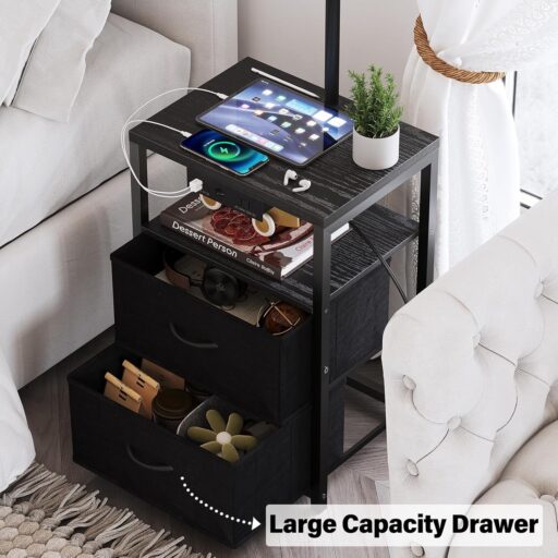 This Multi-Function Nightstand Lamp is a perfect blend of style, storage, and functionality. This versatile piece combines a bedside table, lamp, and charging station, offering both lighting and organizational features for your bedroom, living room, or home office. With two spacious drawers, each capable of holding up to 11 lbs, this lamp provides ample storage for books, glasses, clothes, and more, keeping your space neat and tidy.