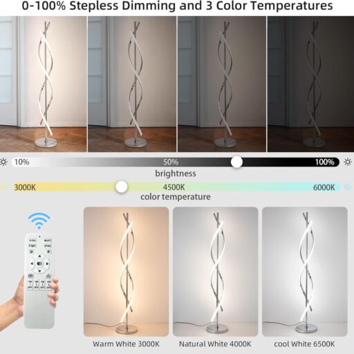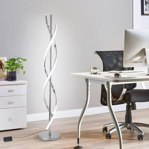 Upgrade your home with our Chrome LED Spiral Floor Lamp. Made from durable aluminum alloy, it features a sleek spiral design with a chrome-plated finish. This modern lamp fits perfectly in living rooms, bedrooms, or offices. Its space-saving design allows placement beside sofas, TV stands, or beds, adding warmth and elegance.