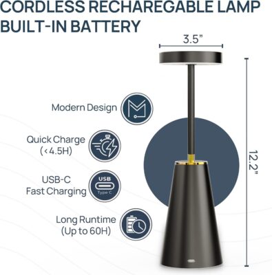 Powered by a built-in rechargeable battery for hassle-free placement anywhere—no cords or outlets needed. -