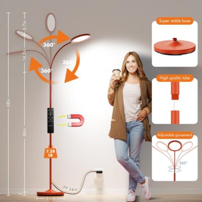 Upgrade Your Home Lighting Experience Enhance your living space with our Dimmable LED Floor Lamp. It offers maximum brightness, energy efficiency, and convenience. With an upgraded metal base, customizable lighting, and smart controls, this lamp is perfect for any room.