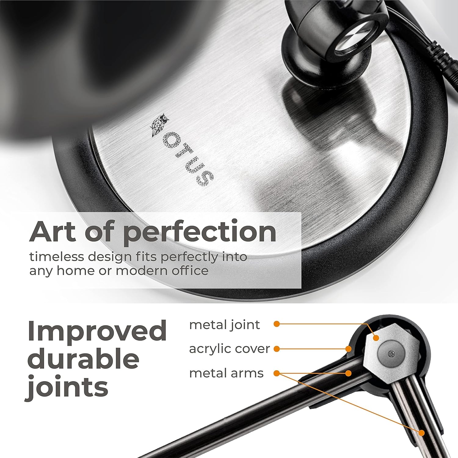 The full-spectrum 120-LED light offers flicker-free, anti-glare illumination with high CRI, ensuring eye comfort and reduced strain during long hours. Designed for durability and efficiency, this LED lamp lasts up to 50,000 hours while using 80% less energy than traditional lighting.