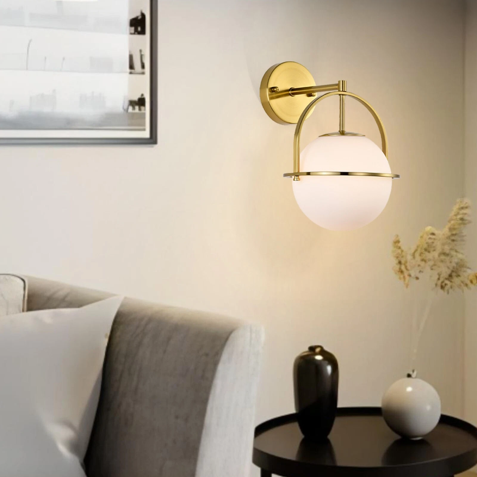 The opal frosted glass shade gently diffuses light to create a soft, glare-free glow — ideal for bedrooms, bedside lighting, hallways, living rooms, dressing areas, and bathroom vanities. Whether used individually or installed in pairs, this globe wall lamp instantly creates a cozy, hotel-inspired atmosphere.