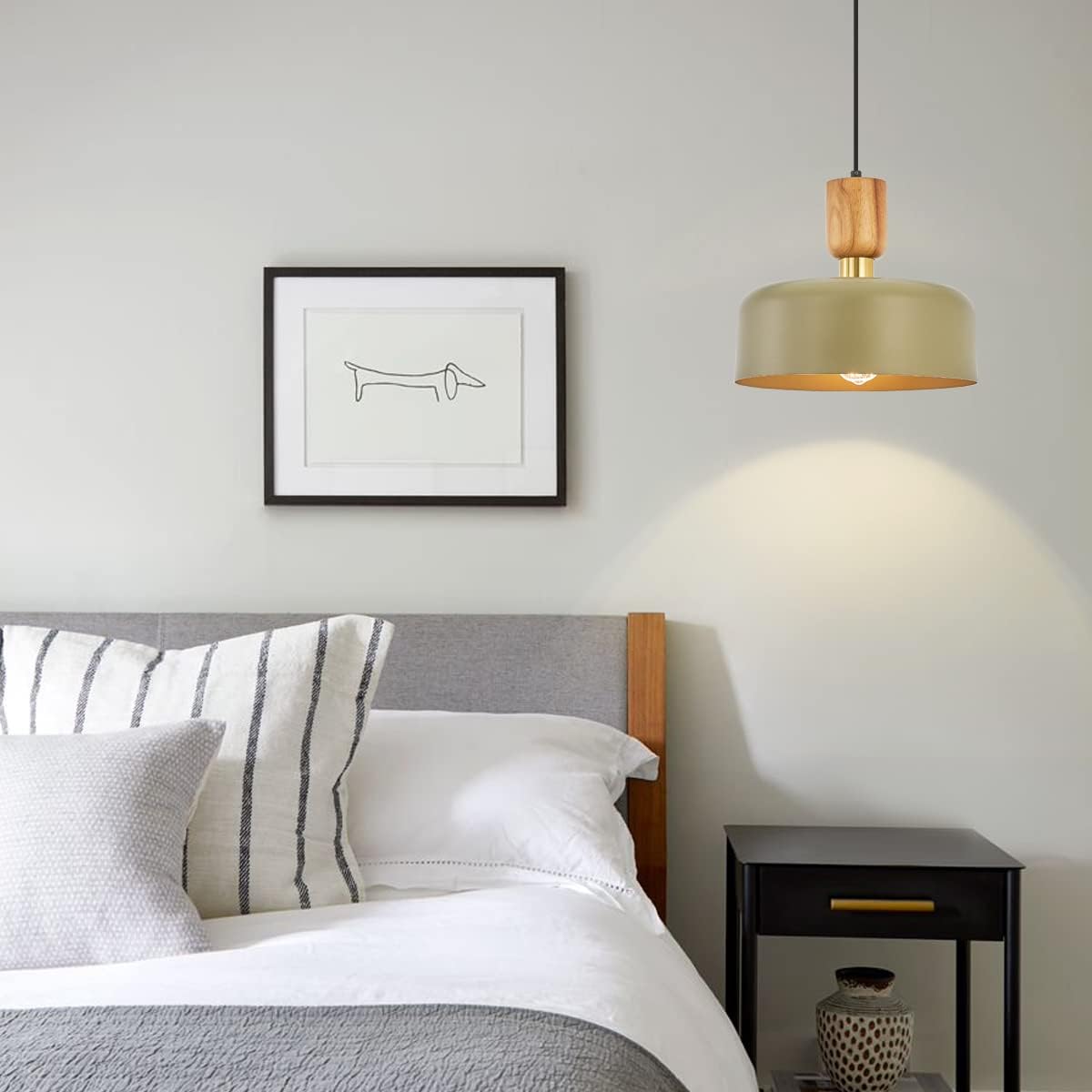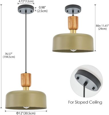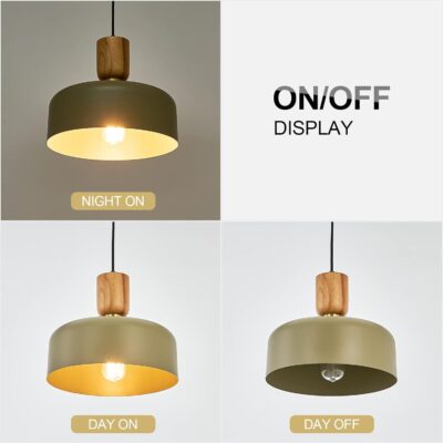 Bring modern charm to your space with this contemporary green pendant light, designed to blend function with style. Featuring a sleek green metal lampshade accented by natural wood and elegant brass details, this fixture channels a Scandinavian aesthetic that’s both warm and sophisticated.