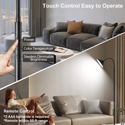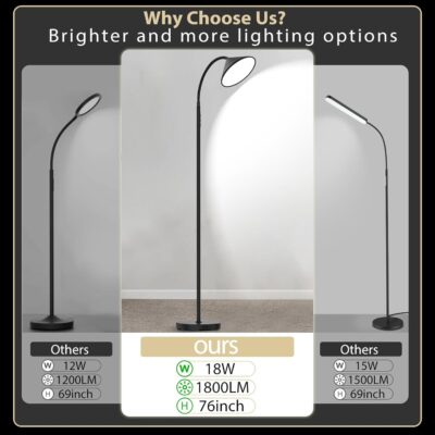 360° Flexible Gooseneck & Extra-Tall Height: The flexible gooseneck provides focused light for close-up tasks or broad room lighting. At 76 inches tall, this lamp offers ample coverage, even when the gooseneck is bent down.