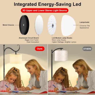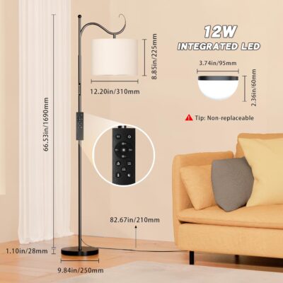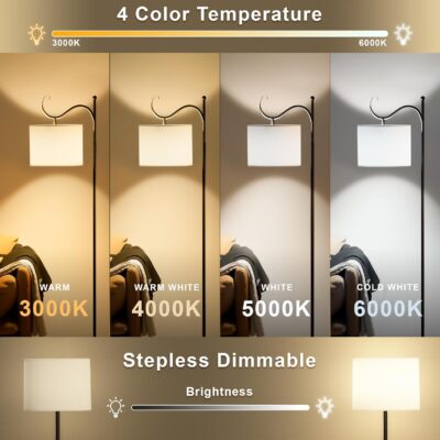 Powered by a 12W integrated LED, this tall floor lamp delivers up to 1200 lumens of bright, energy-efficient light with a lifespan of 30,000 hours. Choose from 4 adjustable color temperatures—3000K, 4000K, 5000K, and 6000K—and enjoy stepless dimming from 5% to 100% for a customized lighting experience, whether you want warm ambiance or crisp daylight.