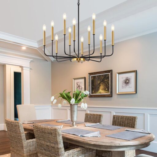 Upgrade your home with the Black and Gold 12-Light Modern Farmhouse Chandelier and experience a perfect blend of style, functionality, and sophistication.