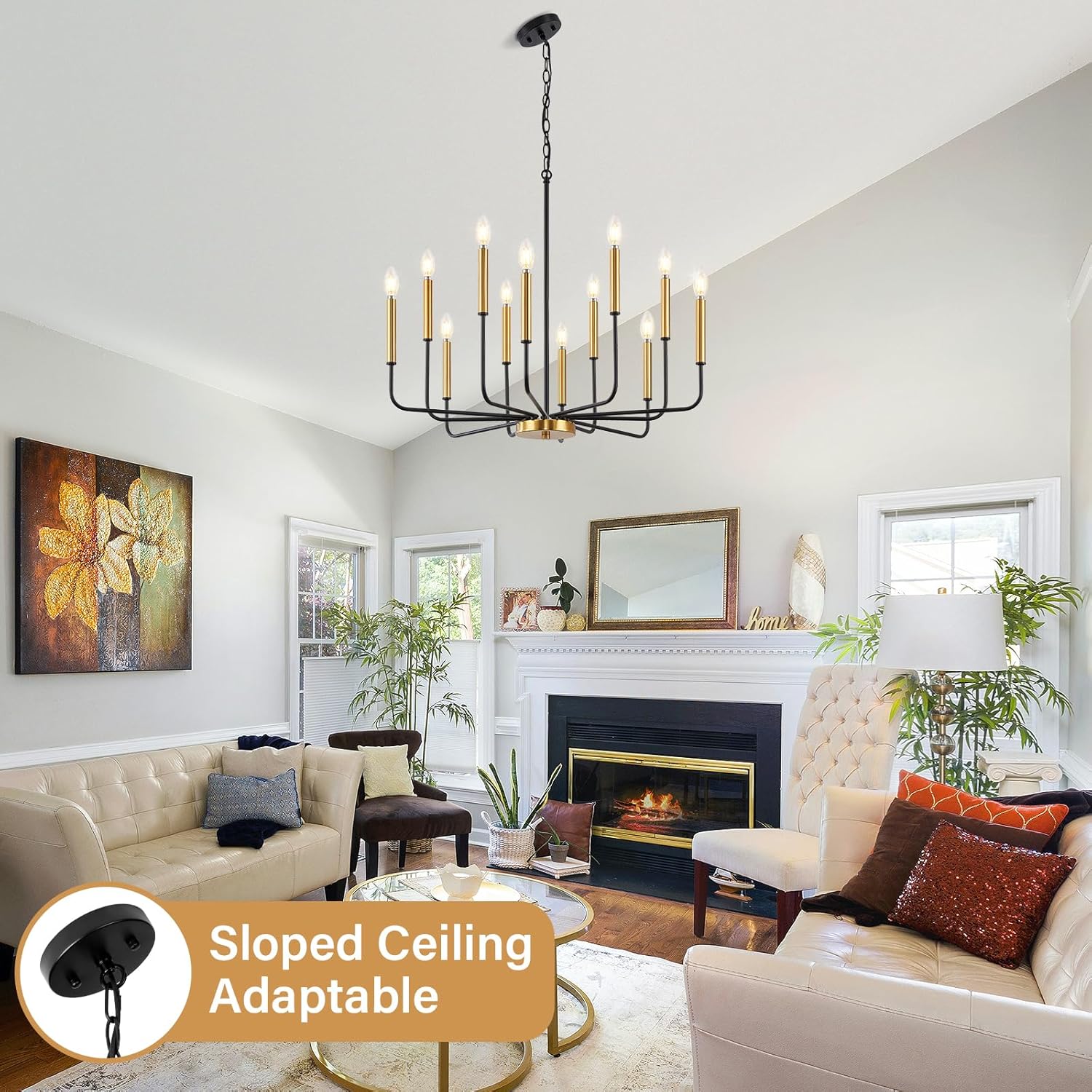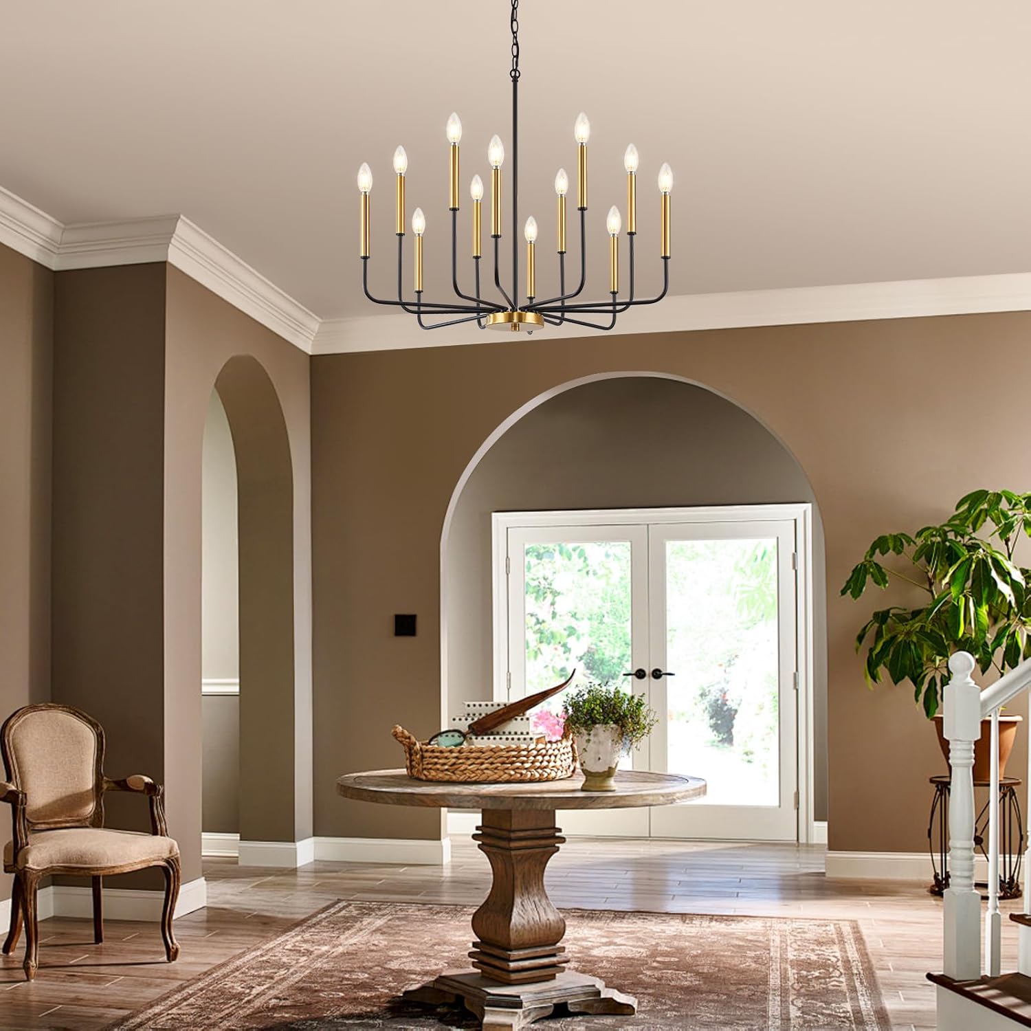 This large 12-light chandelier is an excellent choice for illuminating various spaces, including: