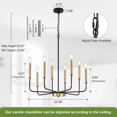- Timeless Design: Featuring a simple yet elegant candle-style frame, this chandelier offers a refined aesthetic that enhances any decor style.