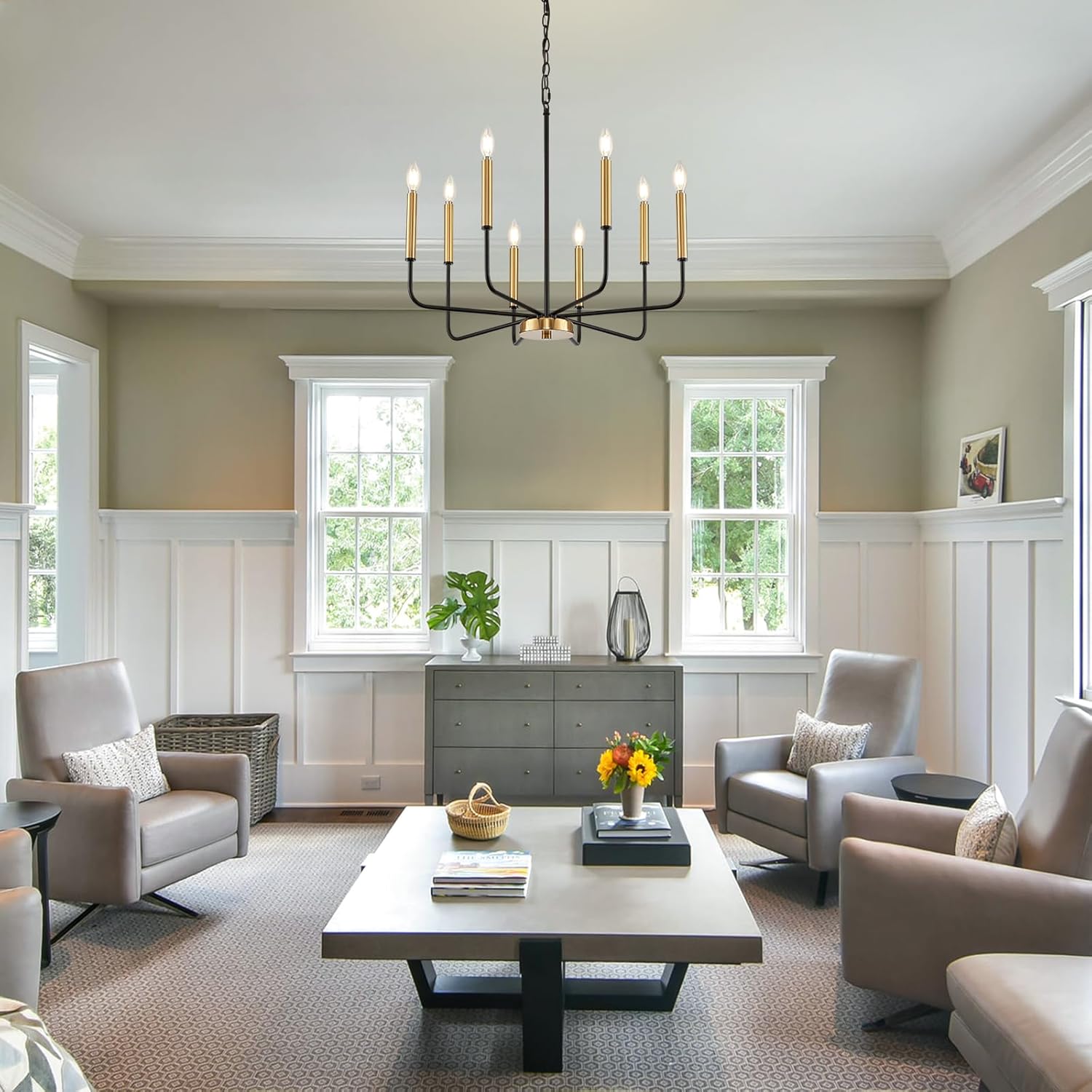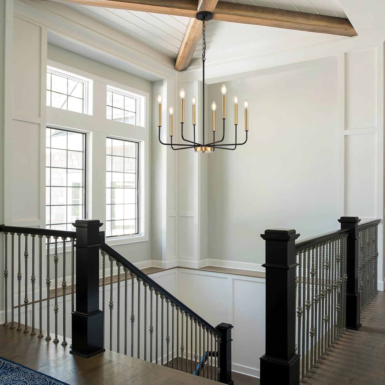 Upgrade your home with this stunning Black and Gold 8-Light Modern Farmhouse Chandelier. Designed with clean lines and a classic candle aesthetic, this chandelier creates a warm and inviting ambiance, making it a perfect focal point for any room. The matte black and brushed gold finish adds a touch of sophistication that complements both traditional and contemporary interiors.