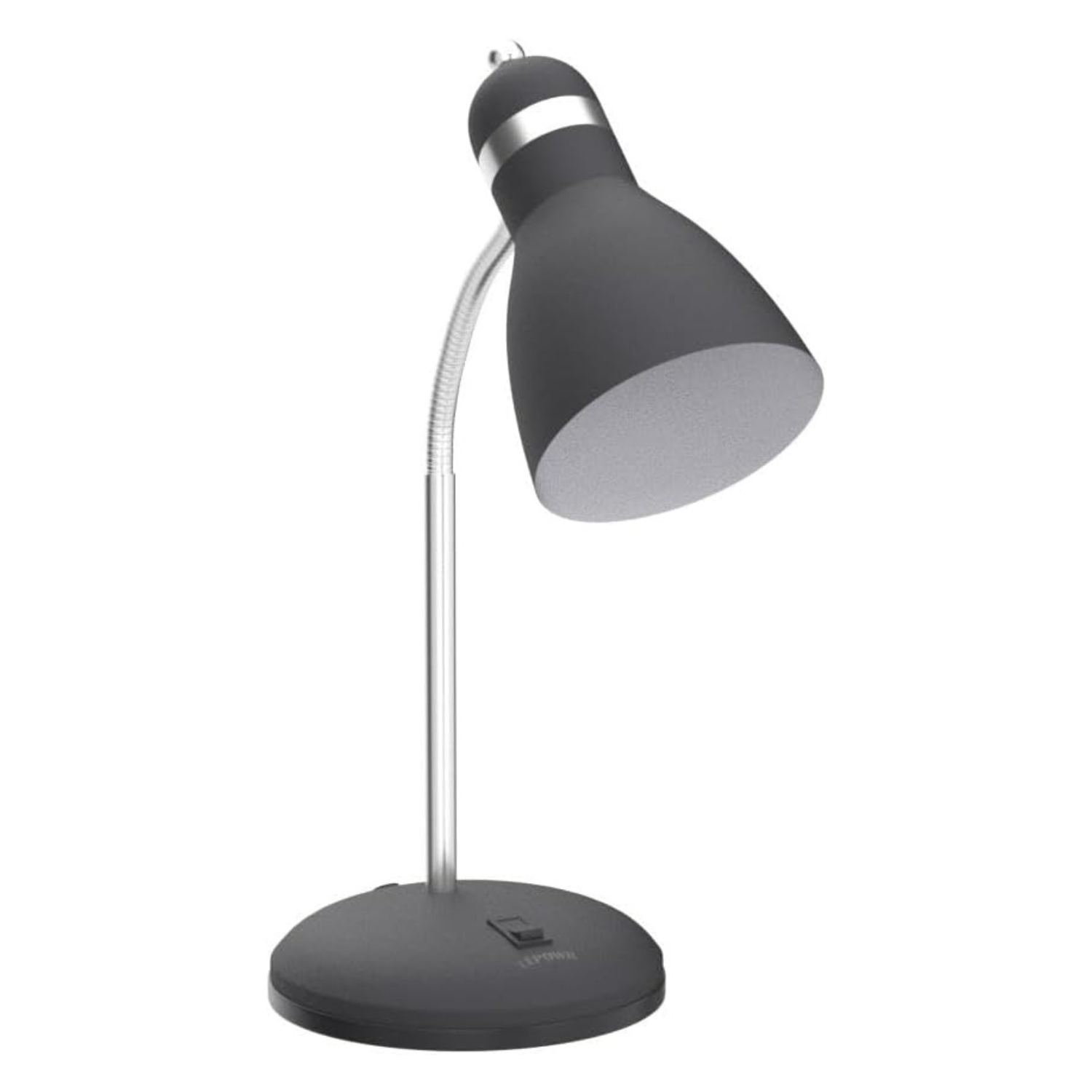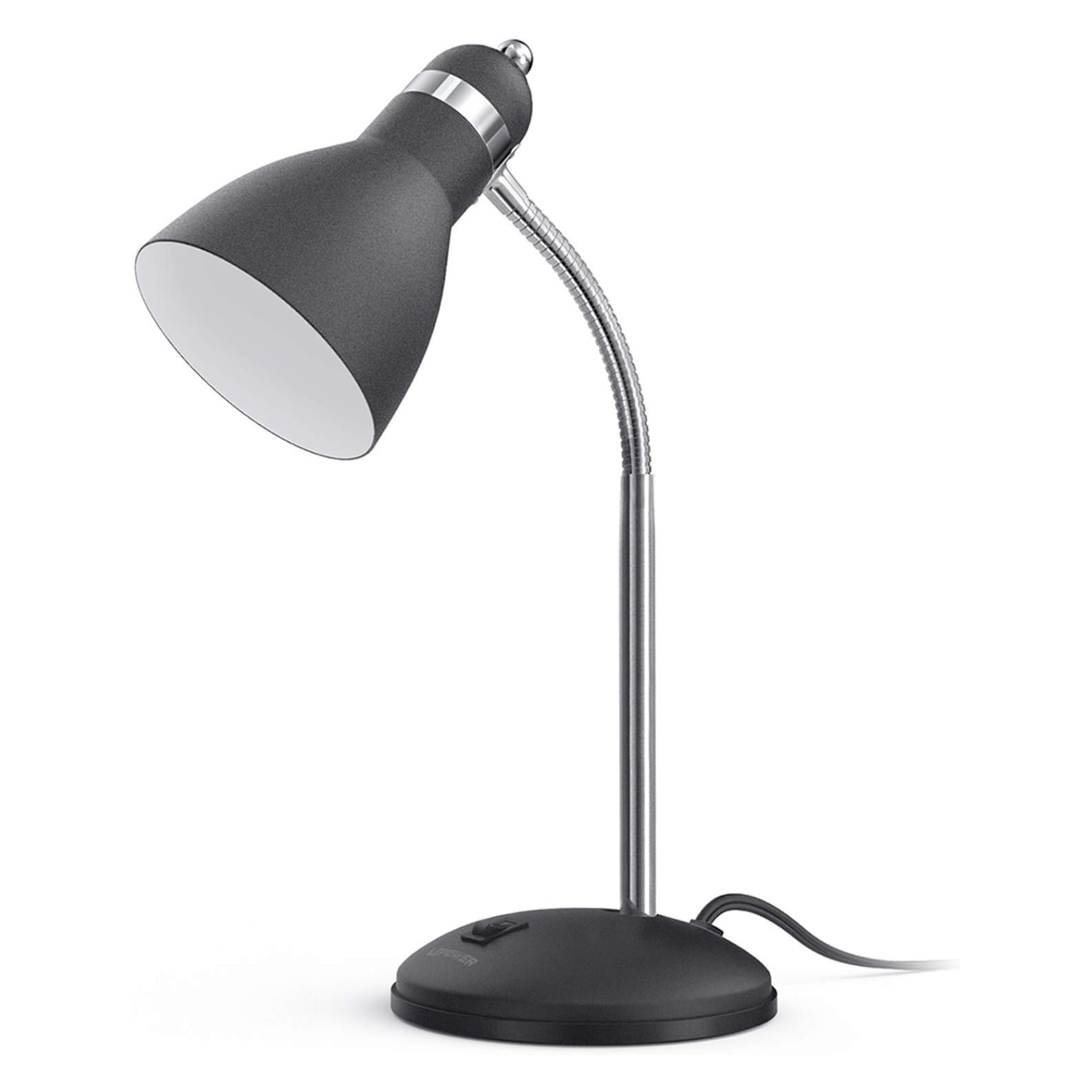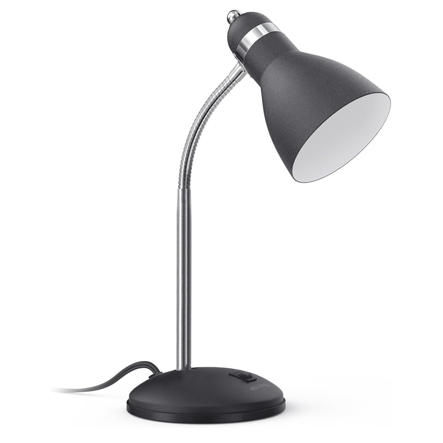Upgrade your workspace or bedside with this eye-caring Metal Desk Lamp in a sleek matte black finish. Crafted from durable metal, the lamp features a sturdy base and lampshade that add a touch of modern style to any room. The flexible gooseneck design lets you easily adjust the lighting angle for reading, studying, or working, while the easy-access on/off switch on the base provides convenience at your fingertips.