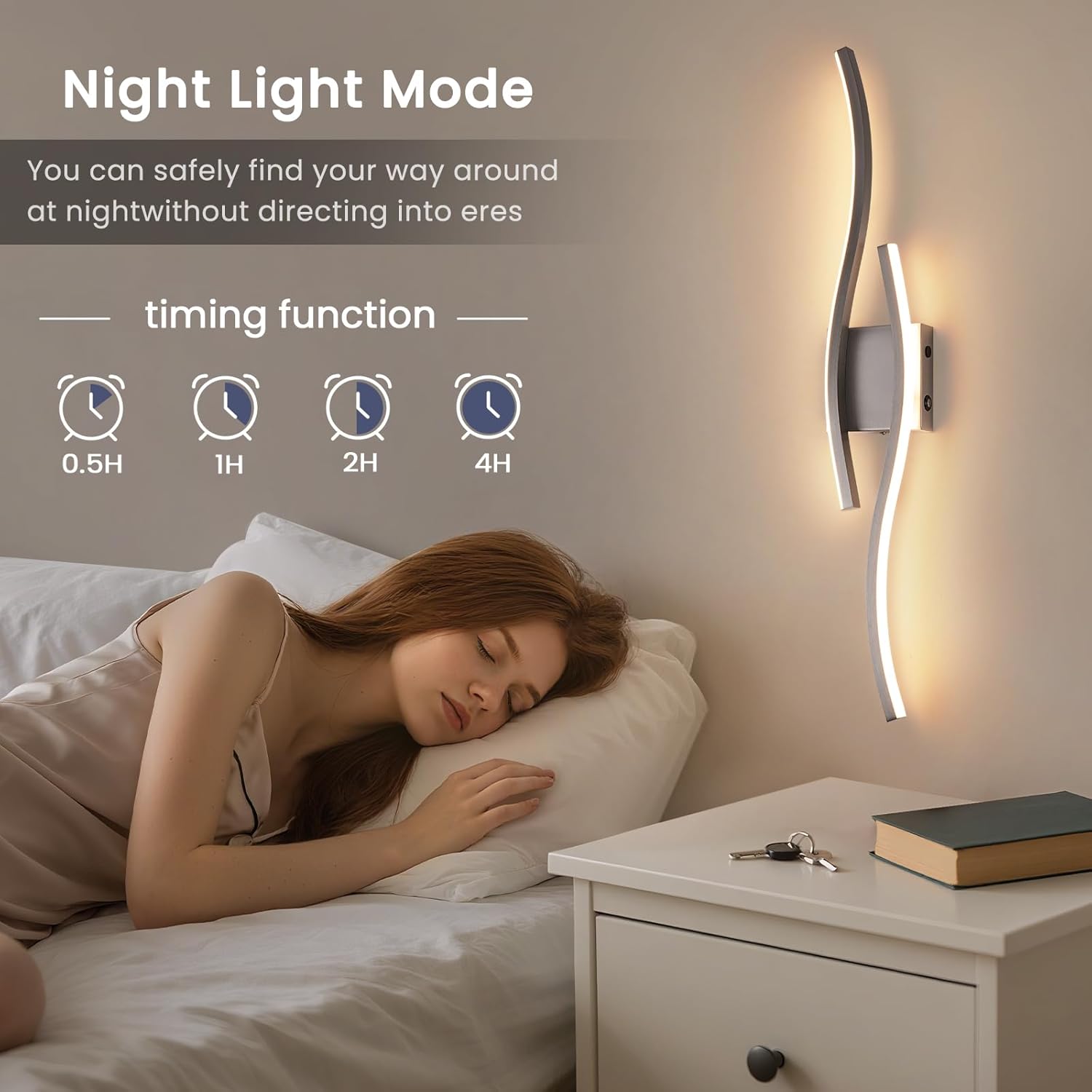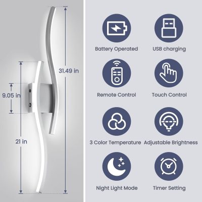 Elevate your home with this modern wireless LED wall sconce in a sophisticated Sand Nickel finish. Featuring a minimalist long-line design with dual spiral curves, this wall lamp doubles as both functional lighting and captivating wall art. Its soft metallic luster adds contemporary elegance to bedrooms, hallways, living rooms, or any indoor space. When illuminated, it creates warm ambient lighting, perfect for cozy evenings or stylish accent décor.