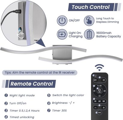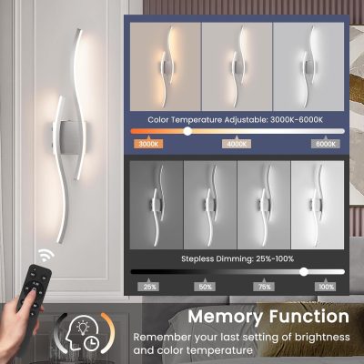 Upgrade your interior with this dimmable, wireless, modern LED wall sconce set, combining contemporary design, ambient lighting, and hassle-free installation. Perfect for both functional and decorative lighting needs.