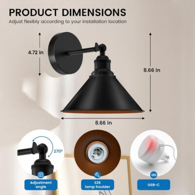 Designed with a 270° adjustable head, these elegant wall sconces adapt effortlessly to different setups. Their timeless vintage design complements various interiors, making them a stylish addition to farmhouses, galleries, bedrooms, dressing tables, hallways, entryways, kitchens, and staircases.