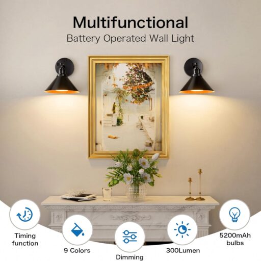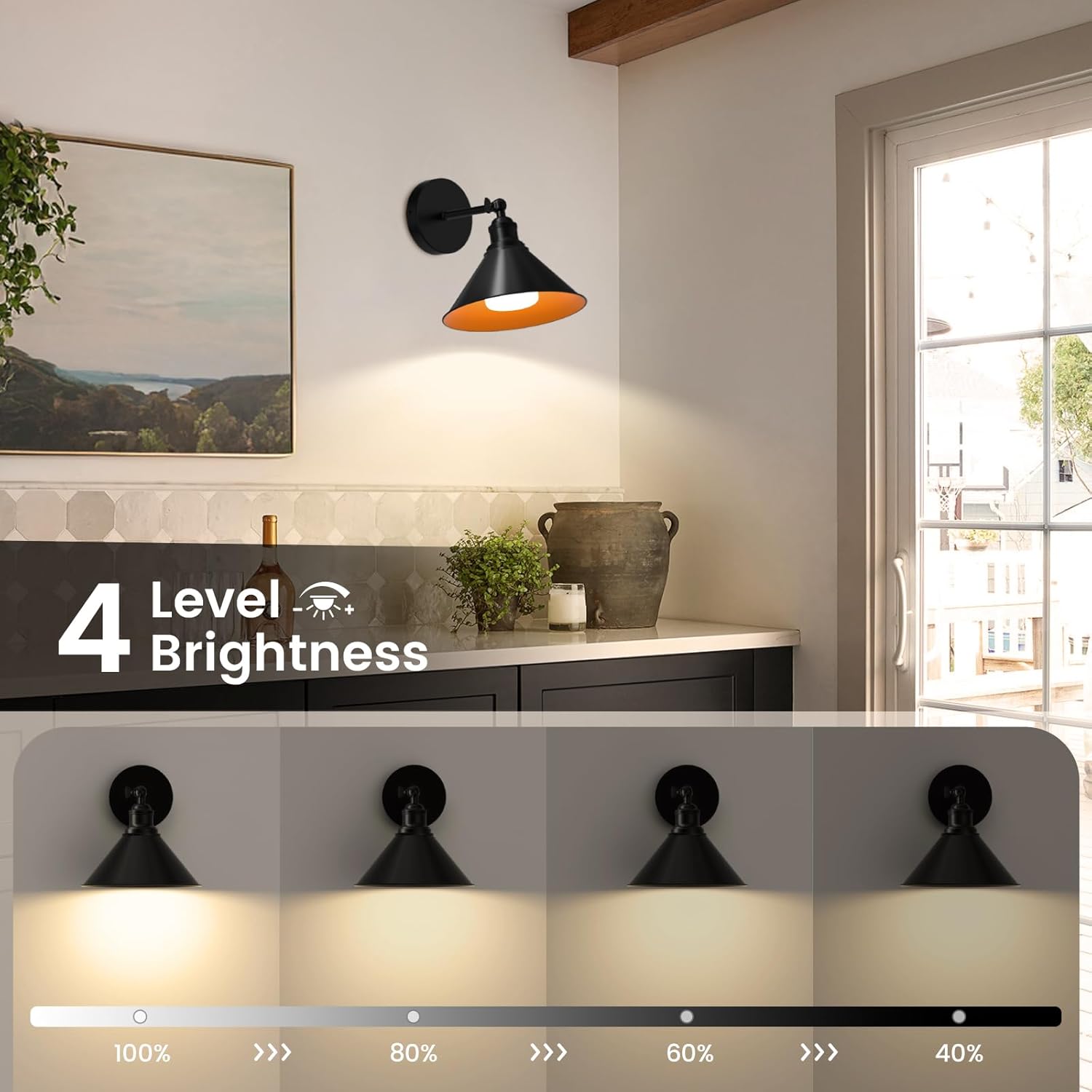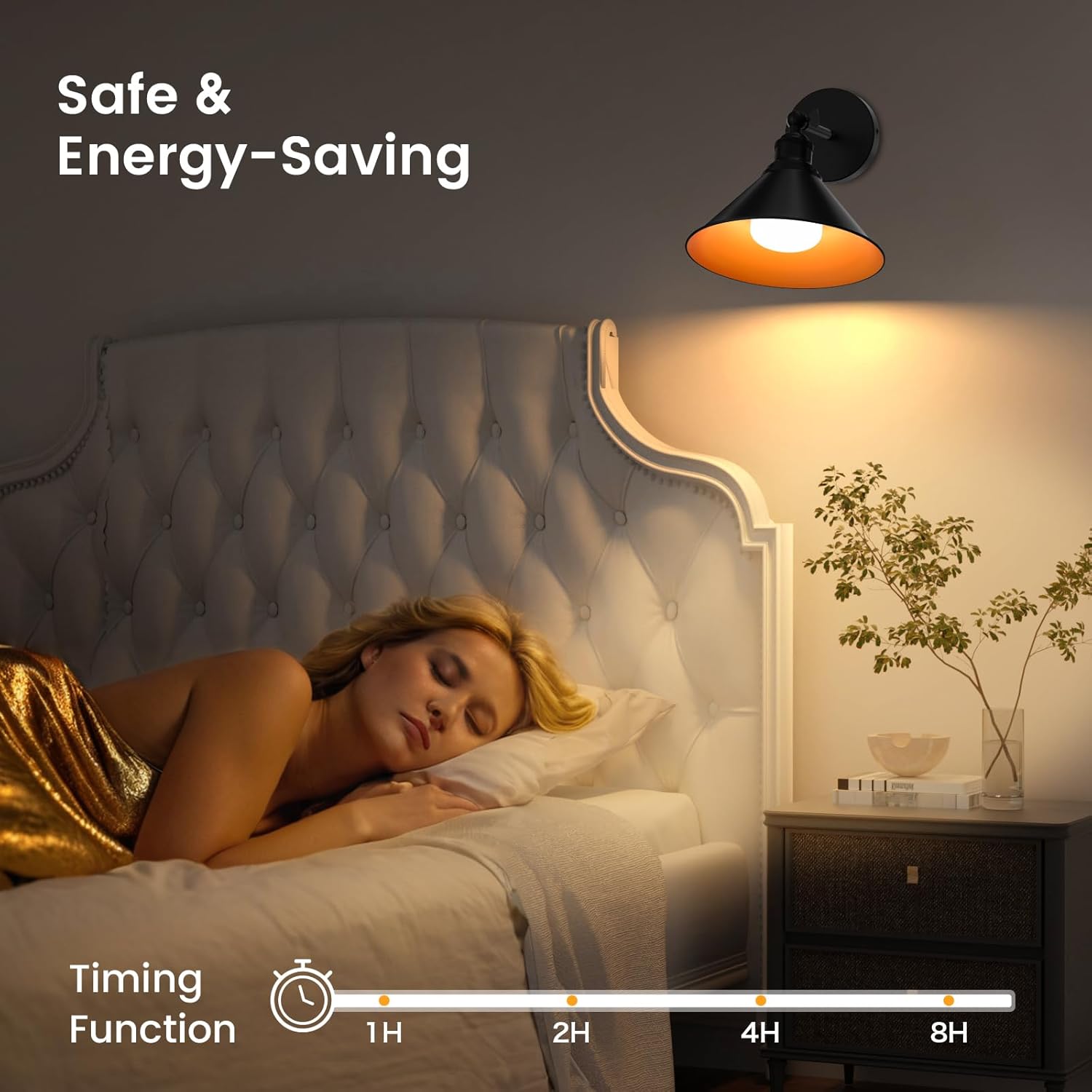 These rechargeable wall sconces come with a built-in timer function offering four customizable settings (1H, 2H, 4H, 8H). The automatic shutoff helps extend battery life and minimizes energy waste. Additionally, the memory function remembers your last lighting preference, so you don’t have to adjust it every time.