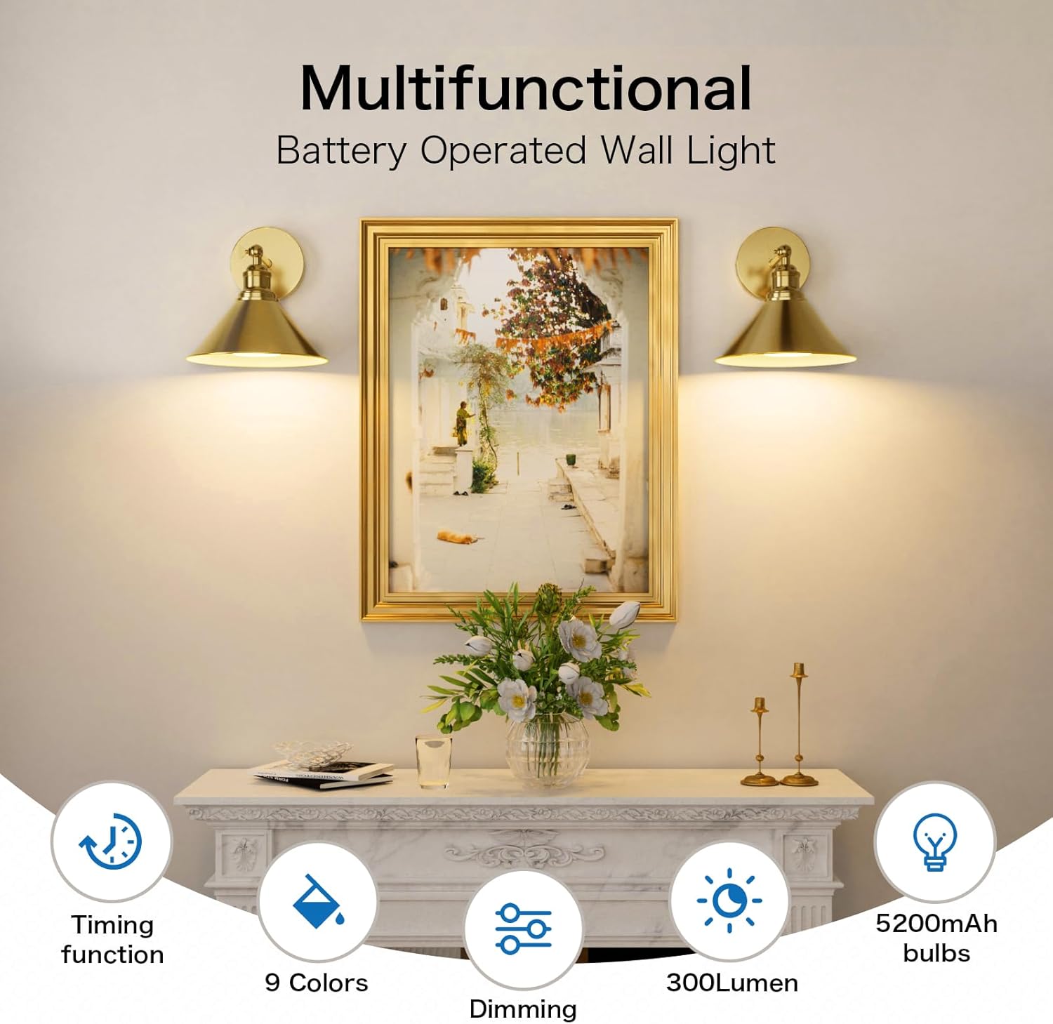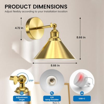 With a 270° adjustable design, these wireless wall sconces fit seamlessly into any setting. The customizable size ensures a perfect match for various installation sites, making them ideal for farmhouses, galleries, bedrooms, dressing tables, hallways, entryways, living rooms, kitchens, and stairs. Experience the perfect fusion of vintage aesthetics and modern functionality.