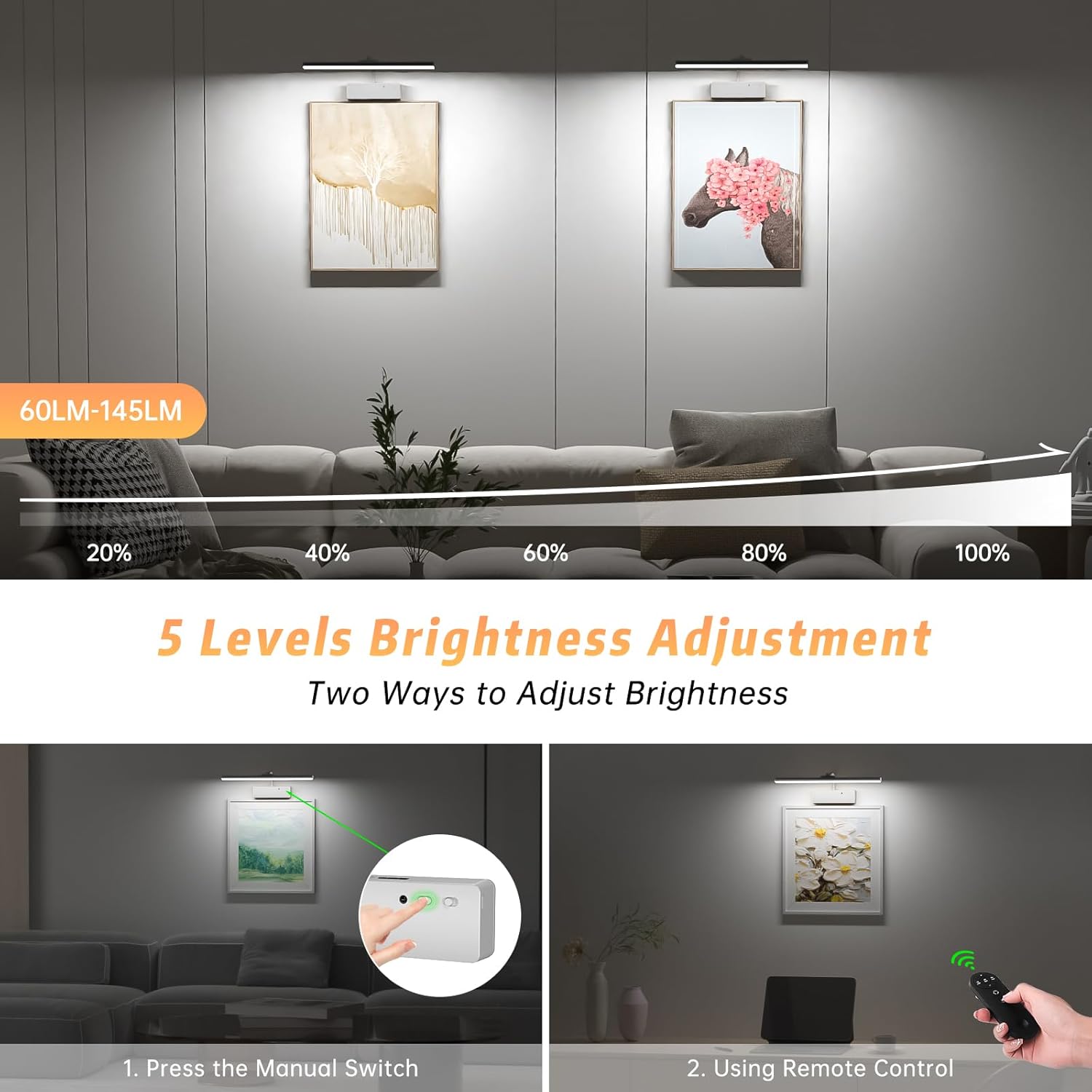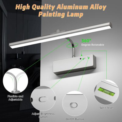 This premium picture light offers three adjustable color temperatures: 3000K warm white, 4500K neutral white, and 6500K daylight. With these options, you can easily create the perfect ambiance for your artwork. Whether you prefer a cozy glow or a crisp, modern look, this light provides the flexibility you need. Furthermore, dimmable brightness allows you to fine-tune the intensity to perfectly complement your framed photos, paintings, or gallery walls.