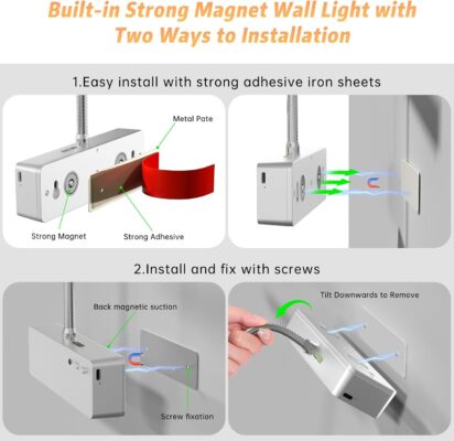 Forget about complicated setups! This wireless picture light features a built-in magnet, allowing it to attach directly to any iron surface. If needed, use the included metal plate with strong adhesive to mount it on any flat surface—no drills or tools required. For those who prefer a more permanent installation, securing the metal plate with screws (also included) is an option. Best of all, the light can be effortlessly detached for quick recharging whenever necessary.