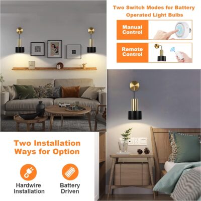 Illuminate your home effortlessly with our battery-operated wall sconces—no wiring required! These sconces provide a hassle-free lighting solution, perfect for any room. Even during power outages, enjoy reliable lighting without the need for electrical installation. Note: Standard wires are included for those who prefer E26 bulbs and wired installation.