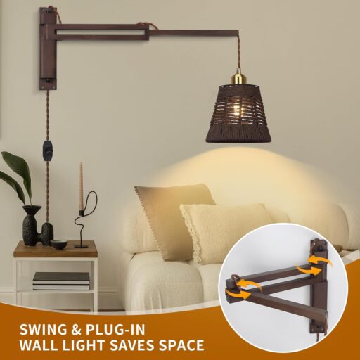 Ideal for a variety of settings, from bedrooms and living rooms to offices and reading nooks, this plug-in wall sconce brings both beauty and practicality to your home decor.